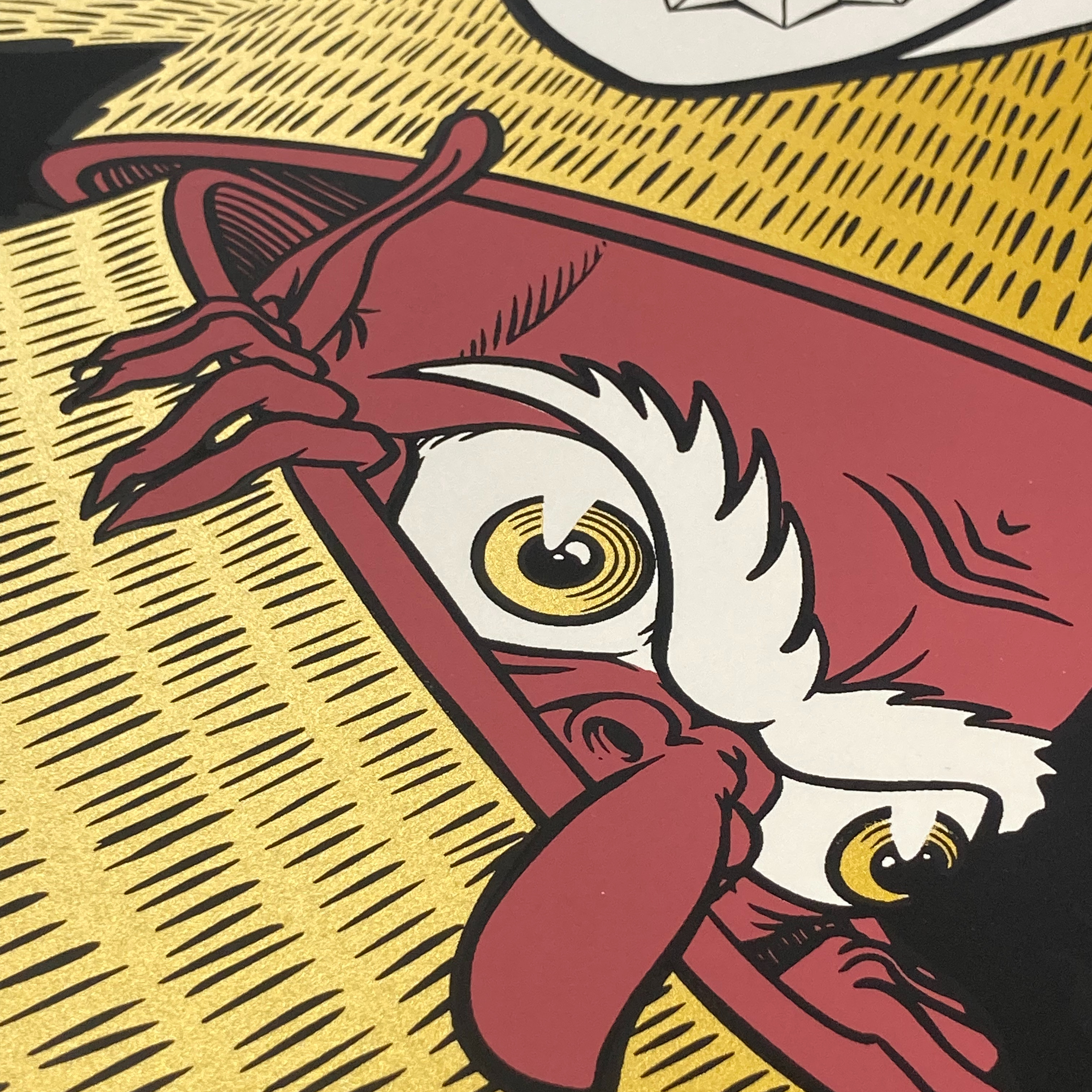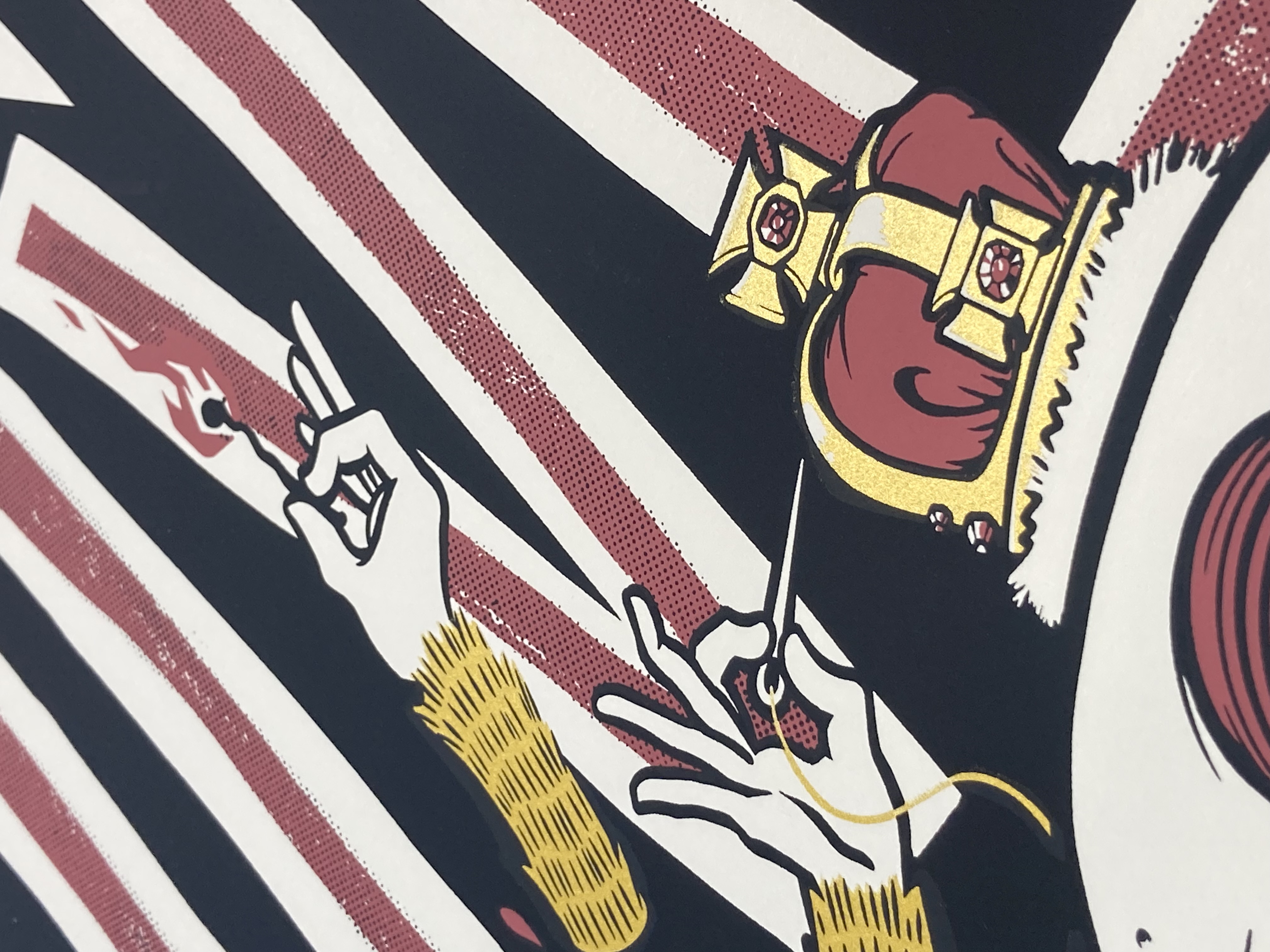 It opened itself up only to need to sew itself shut!! It’s got the hook, it made you look, with a fire lit in its heart, it’s sure to catch that fish! Official 3 color screen print poster for The Hives’ show at the Ogden theatre at Denver,CO. Metallic gold!!