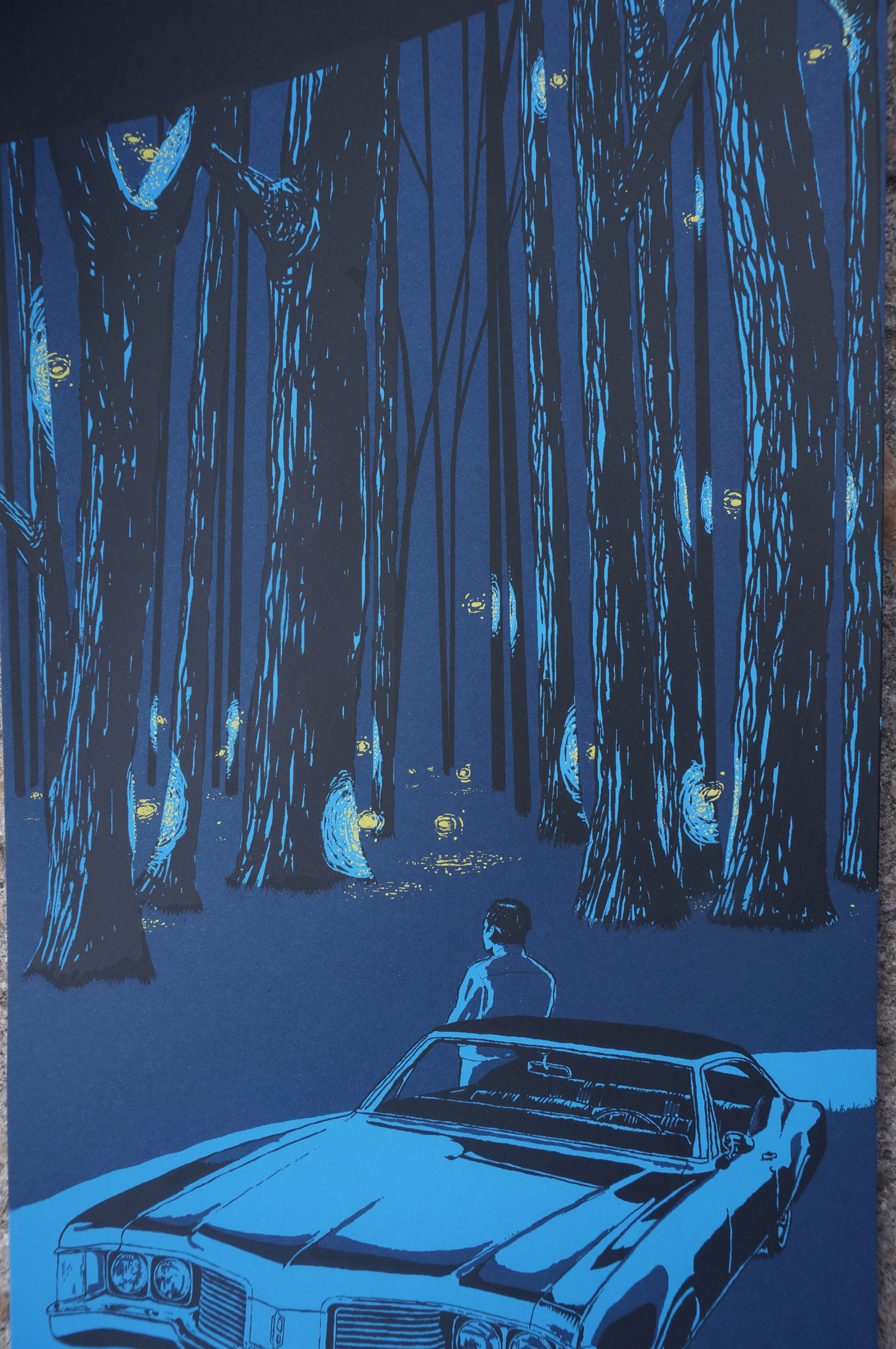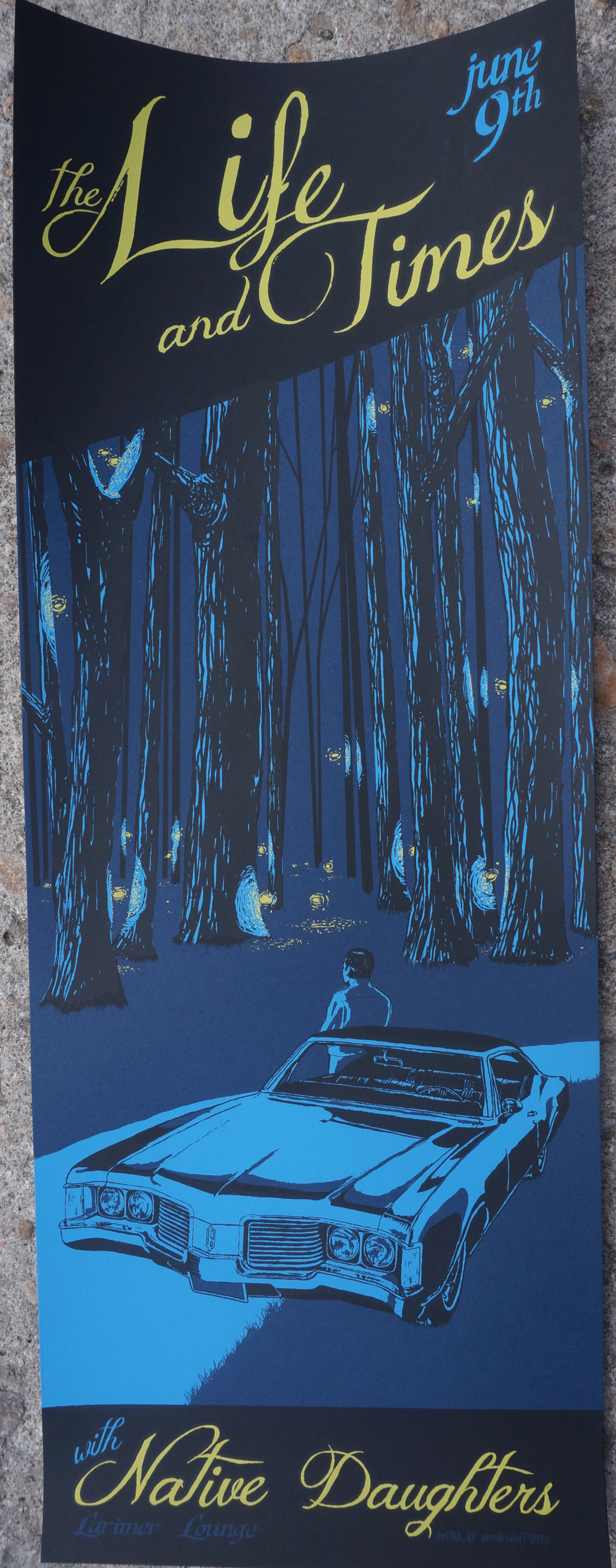 3 color hand pulled screen print on 100lb. french paper. poster dimensions are 9"x24".