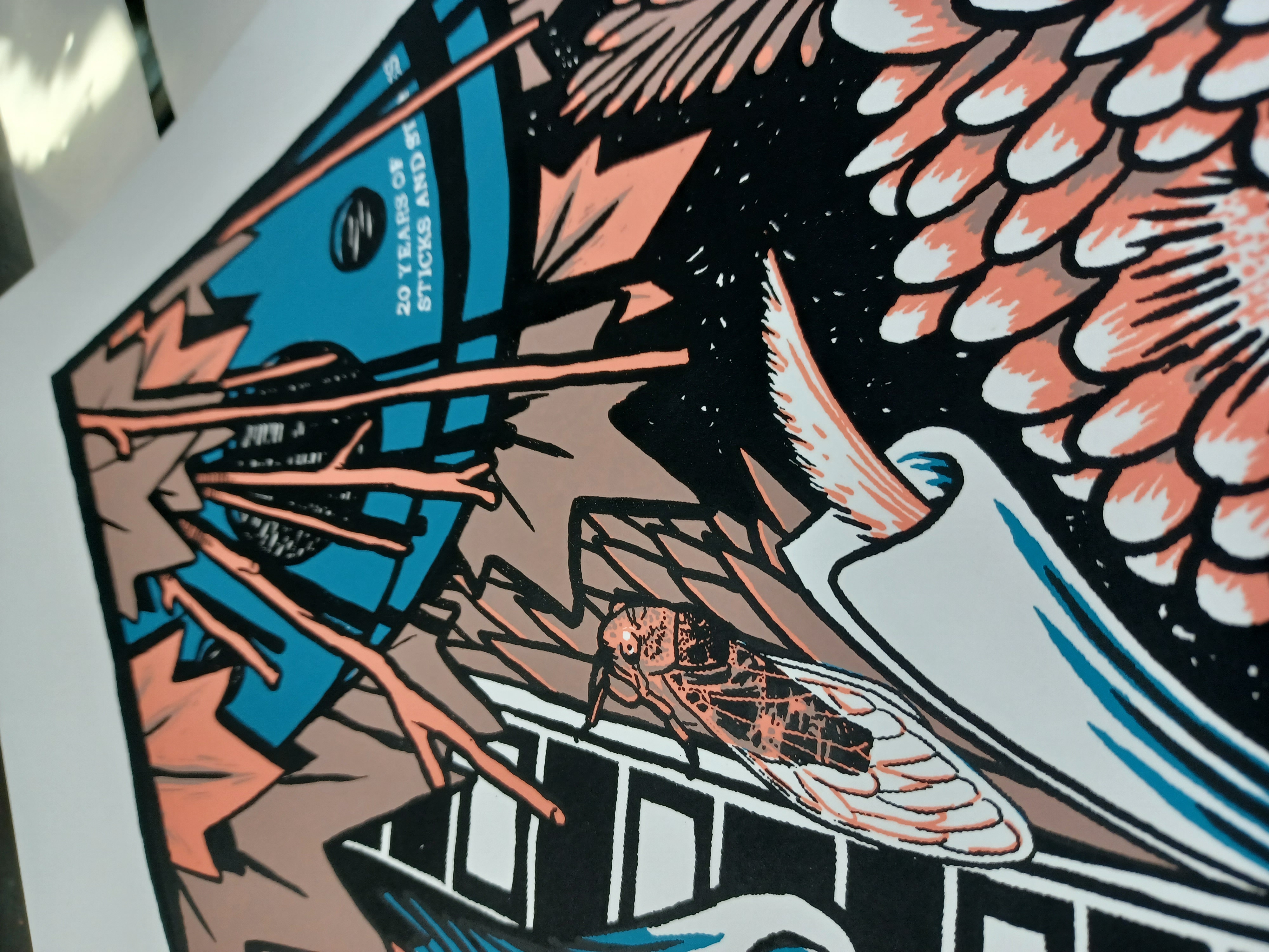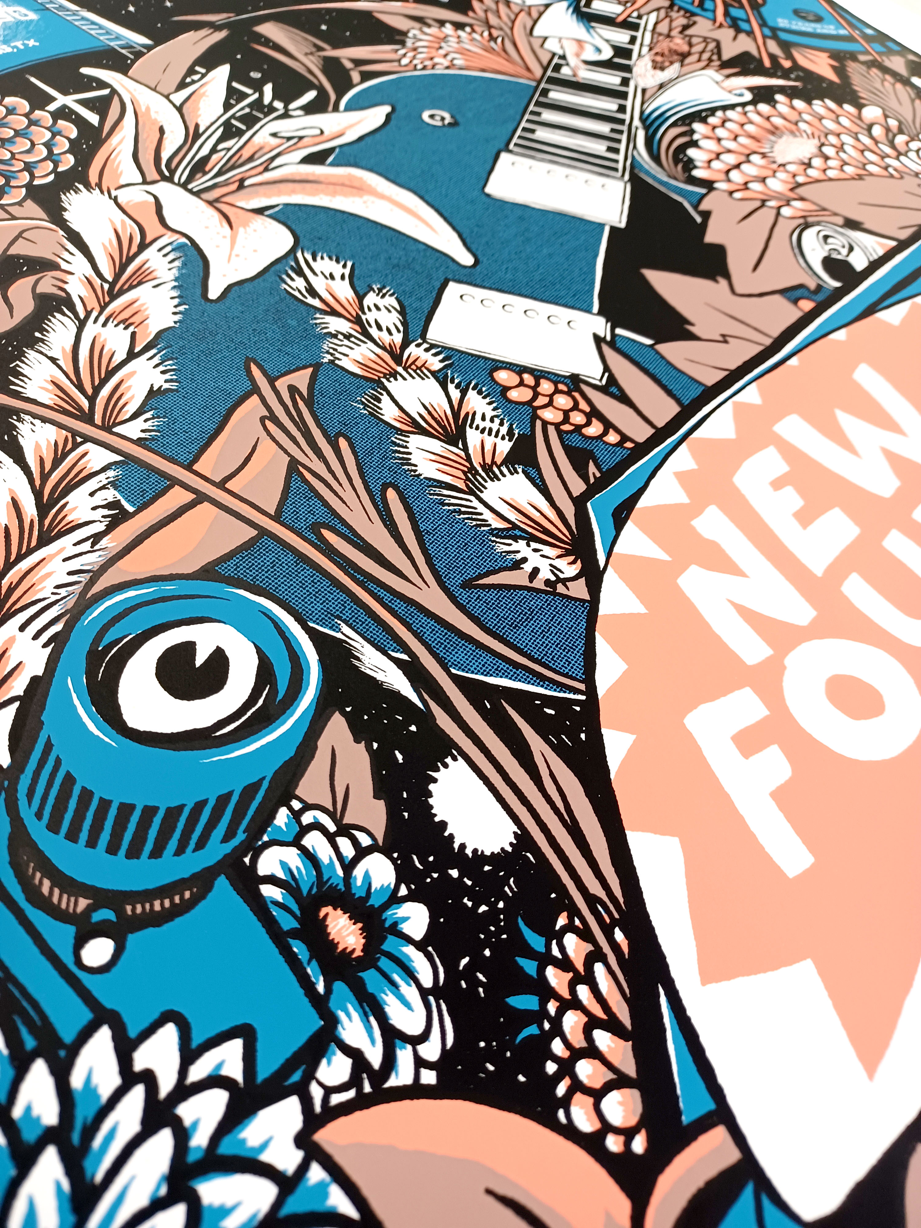 The official 18x24" 3 color, hand printed screen print commemorating 20 years of New Found Glory's 'sticks and stones' album at the Dallas House of Blues!