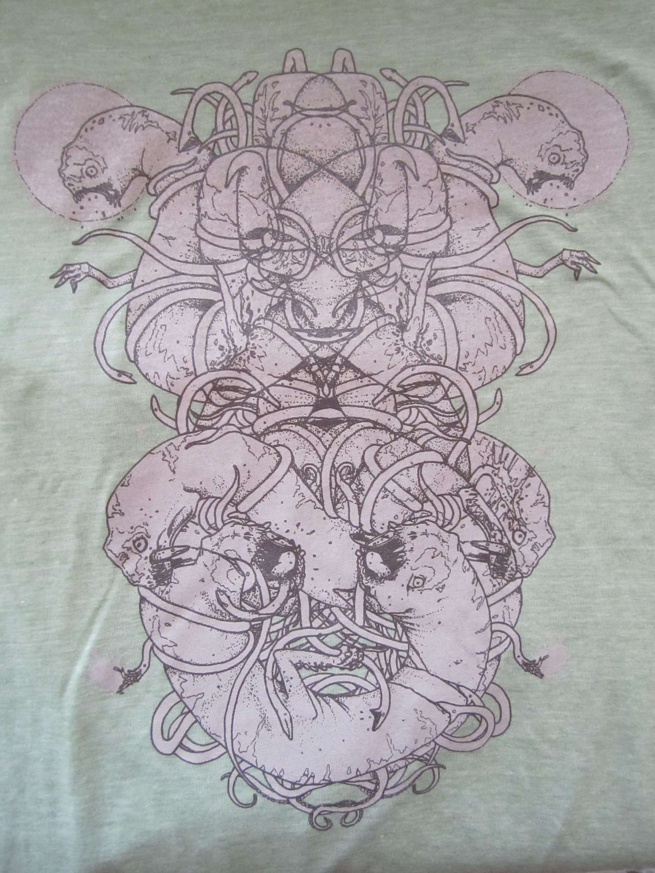 2 color soft hand printed shirts celebrating graboids, monsters, and the female reproductive system? huh?! doesn't matter, it looks sweet! soft, ring spun, form fitted shirts. enjoy!