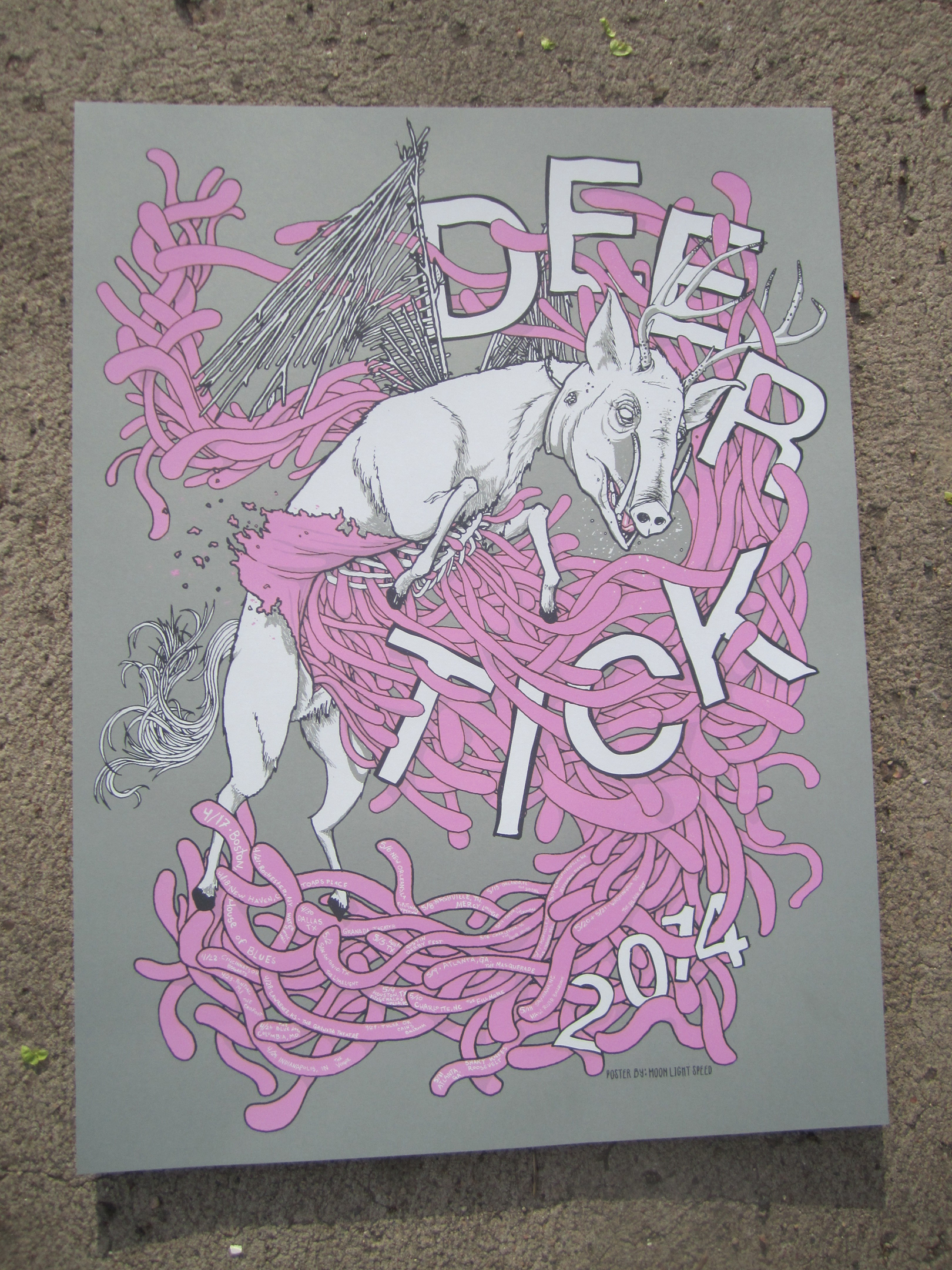 a limited, 3 color screen printed poster for deer tick's 2014 spring tour. measures 18x24, printed on archival french paper!