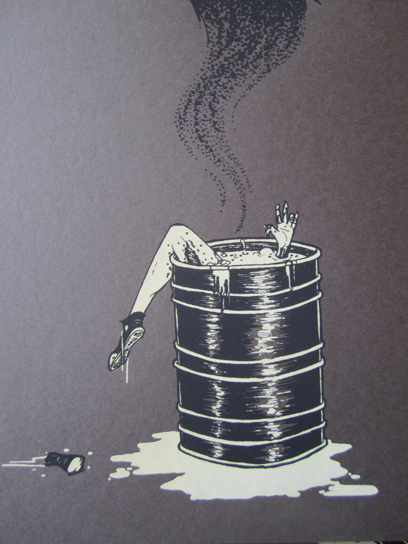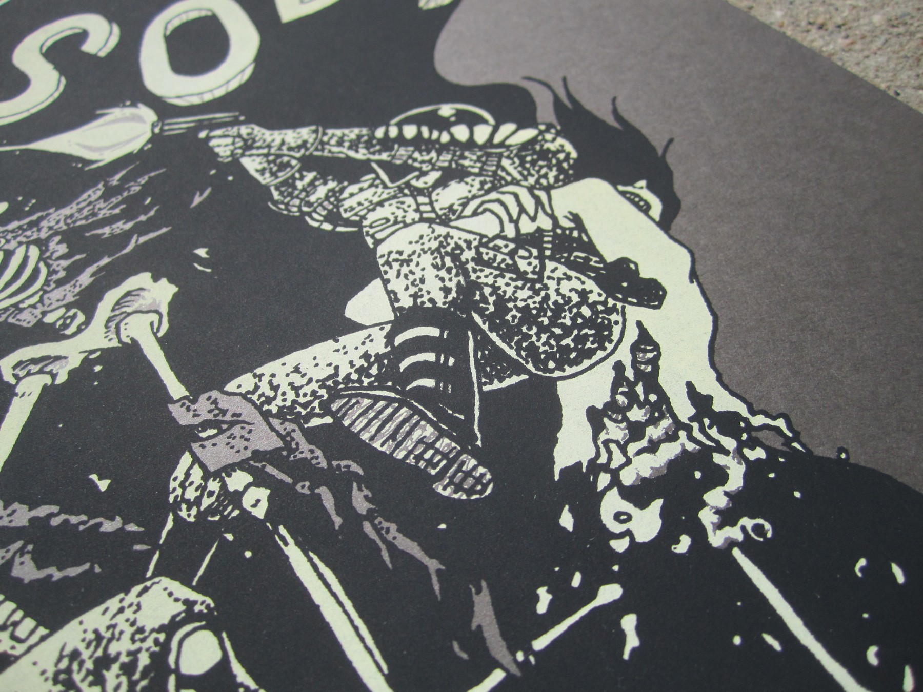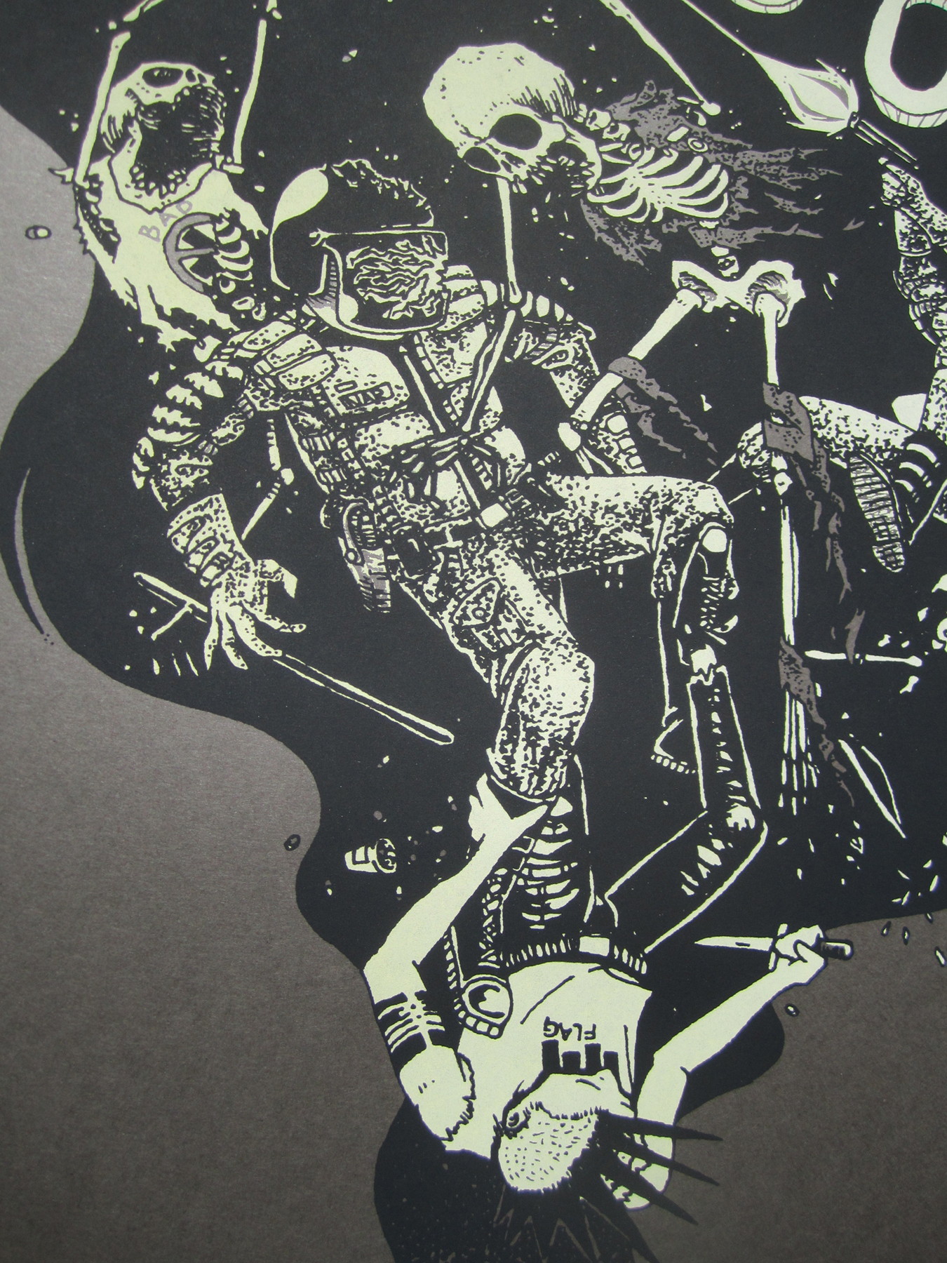 Caustic soda - A Year Future Narco Romance is a graphic novel that i had the pleasure of illustrating the cover of the first installment. here it is blown up to 16"x24" and hand printed on 100# french paper. perfect for the riotous, upheaval driven, cop killing, minor threat blasting side of you! take the power back!